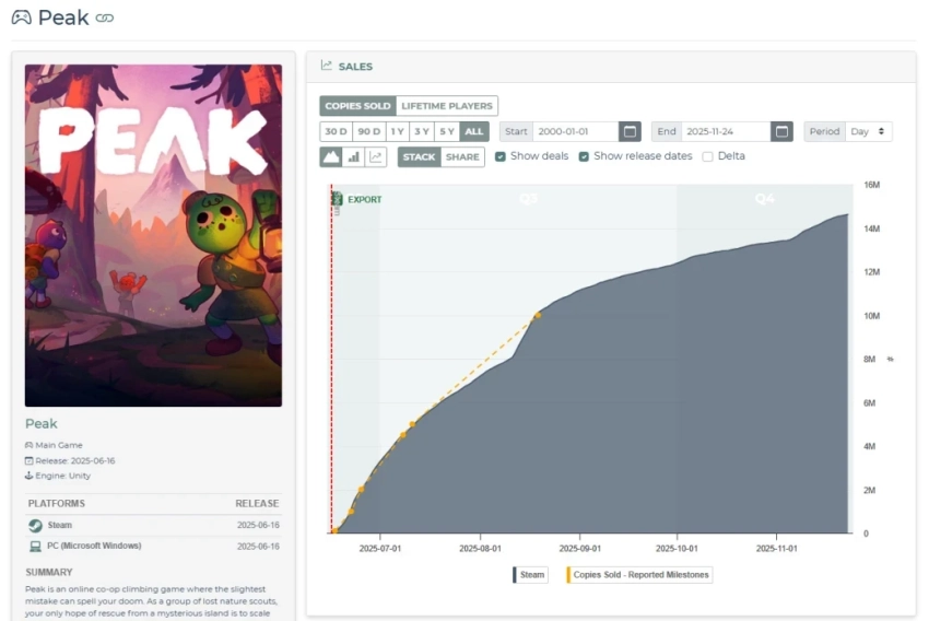 Продажи популярного симулятора скалолазания Peak могут скоро достичь 15 млн