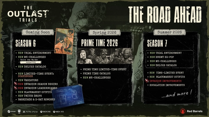 Обложка: постер игры The Outlast TrialsRed Barrels провела праздничный стрим по The Outlast Trials, отметив 2 года с полноценного релиза. На нём показали дорожную карту с обновлениями игры вплоть до лета, когда ожидается 7 сезон.