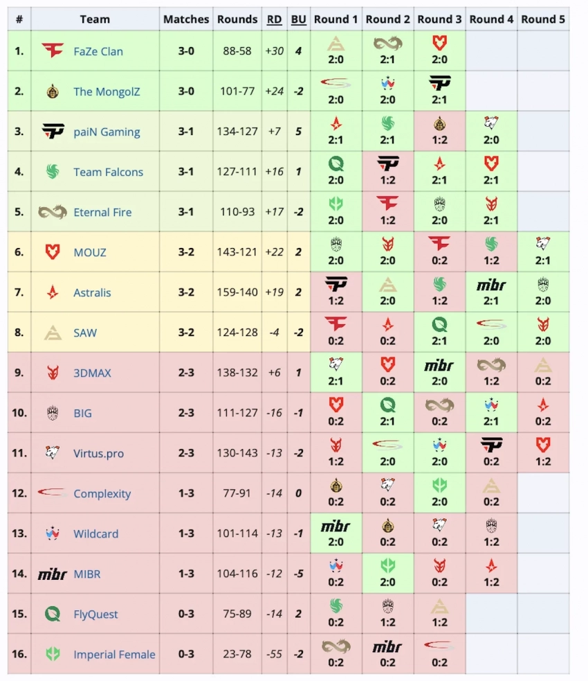 Итак, участники плей-офф: FaZe Clan и SAW, Eternal Fire и Team Falcons, paiN Gaming и MOUZ, Astralis и The MongolZ. Эти команды встретятся в первом раунде нокаут-стадии 21 февраля.
