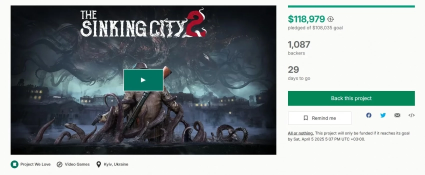 Напомним, что сегодня на Kickstarter стартовала кампания The Sinking City 2 — и необходимые средства игра собрала за несколько часов.