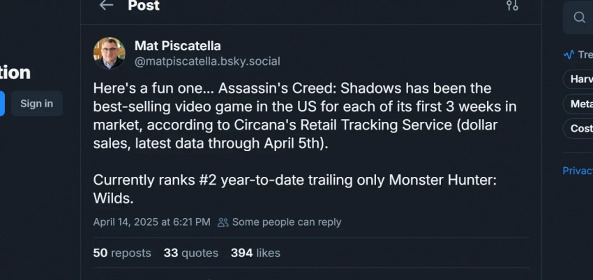 Assassinʼs Creed Shadows захватила чарты США, но уступила одной игре