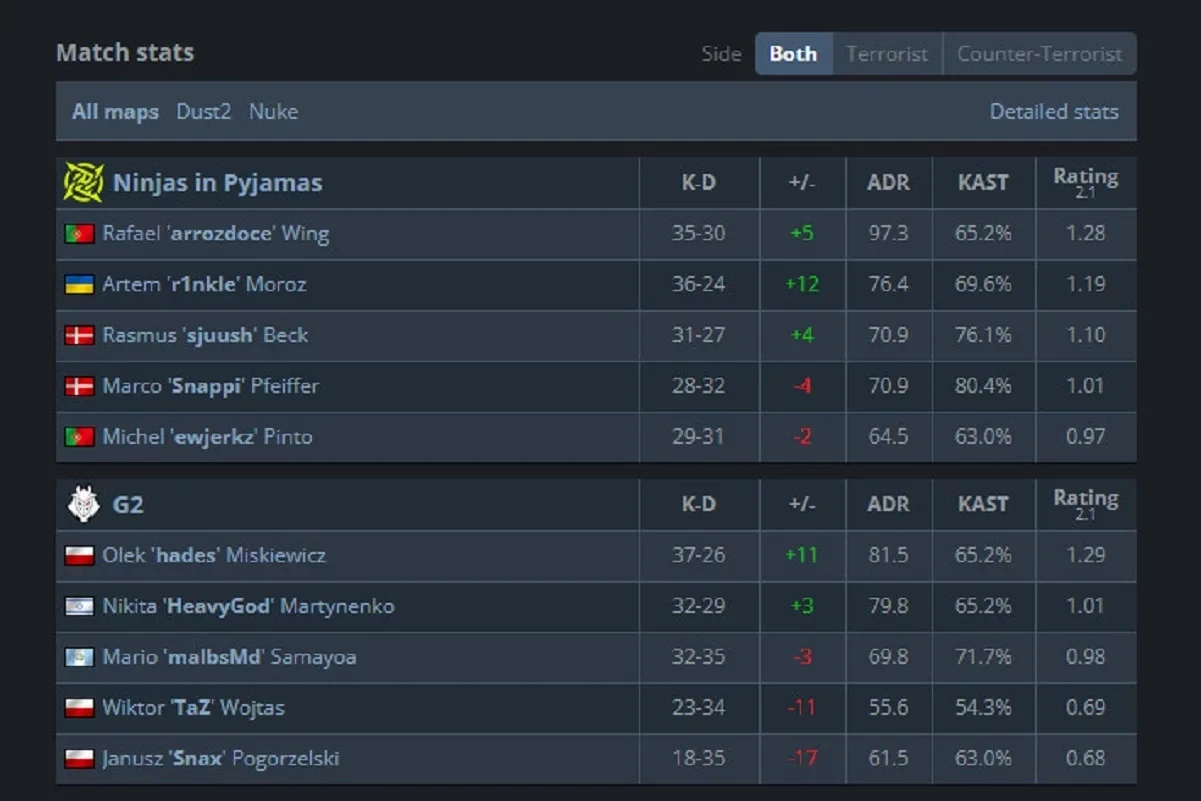 Статистика матча NiP против G2