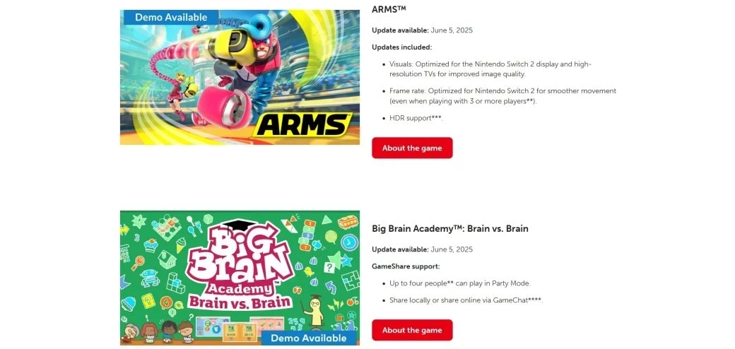 Все обновления будут доступны 5 июня — в день старта продаж Nintendo Switch 2.