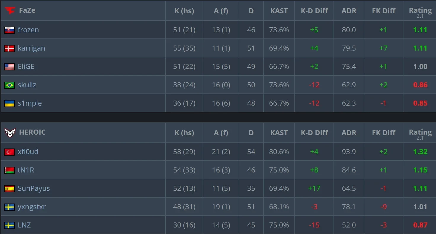 Статистика серии карт матча FaZe против HEROIC