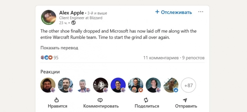 Сообщение о прекращении развития Warcraft Rumble стало частью «кровавой бойни» Microsoft, в результате которой 4%, или чуть более 9000 сотрудников, потеряли работу. Хотя большинство увольнений не коснулись игрового подразделения, студии Xbox сильно пострадали. Как сообщает инженер Blizzard, он был уволен вместо со всей командой Warcraft Rumble.