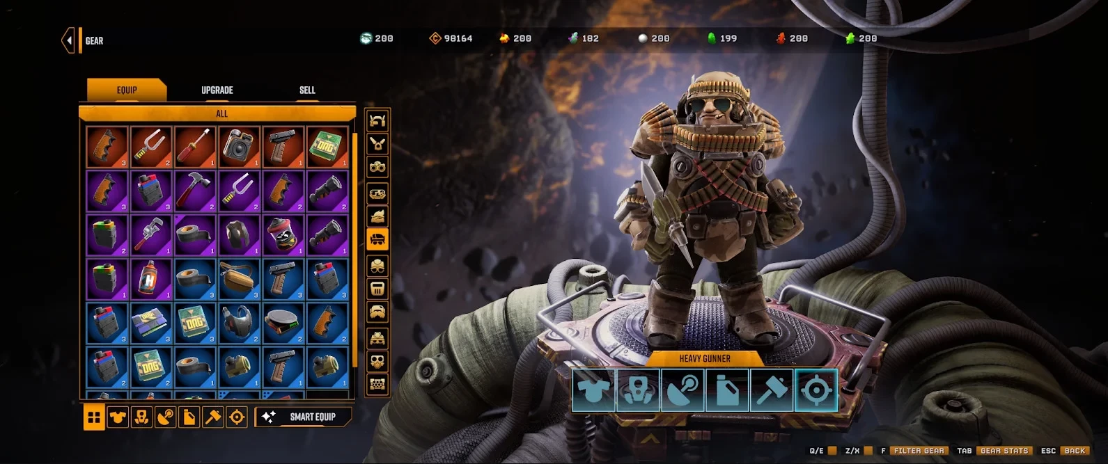 Любимую экипировку получится прокачивать, используя валюты и ресурсы Deep Rock Galactic: Survivor. Также бонусы от снаряжения будут суммироваться с другими вариантами увеличения характеристик.