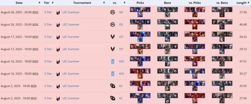 На момент публикации Natus Vincere завершила выступление в основном этапе LEC Summer 2025; следующая возможность исправить результаты — зимний сплит 2026 года.