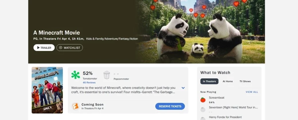 «Minecraft в кино» выходит в кино (оцените креатив) 4 апреля 2025 года. Лента вошла в топ-3 предпродаж среди экранизаций видеоигр.